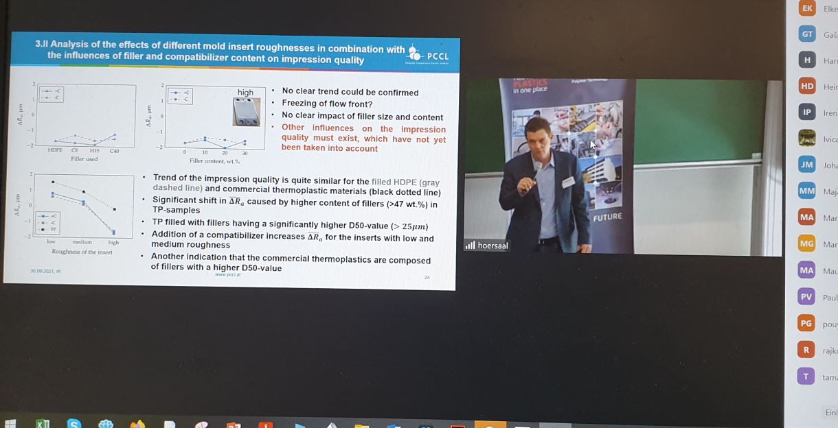 on microstructure (Dr. Roman Kerschbaumer/PCCL), and insights and outlooks into the possibilities of simulating variables that influence the appearance of the surface of injection molded parts (assoc. Prof. Dr. Thomas